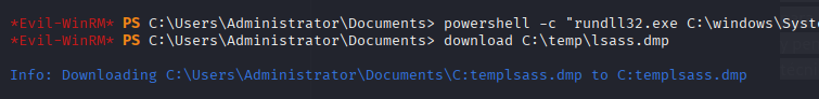rundll32.exe C:\windows\system32\comsvcs.dll, MiniDump 1234 C:\temp\lsass.dmp full
